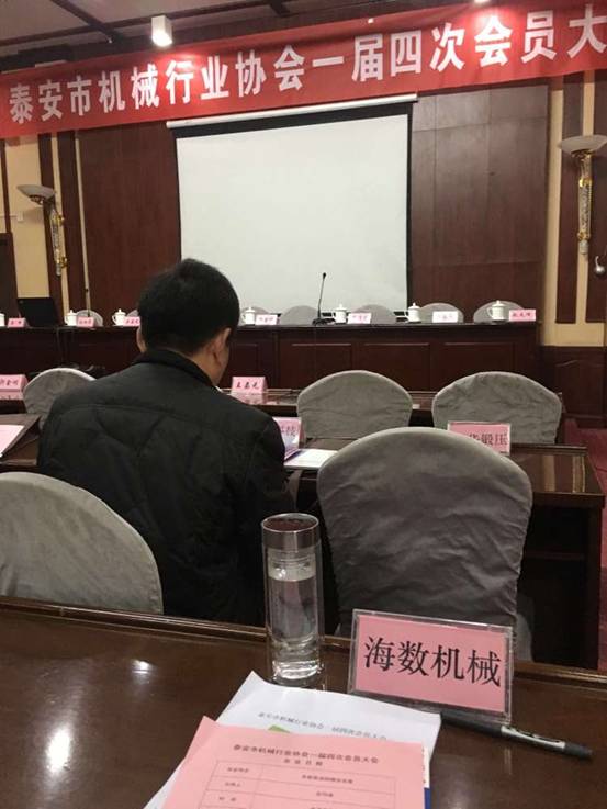 泰安市機(jī)械行業(yè)協(xié)會(huì)一屆四次會(huì)員大會(huì)于2015年12月6日召開,泰安海數(shù)機(jī)械制造有限公司作為理事單位參加了會(huì)議。